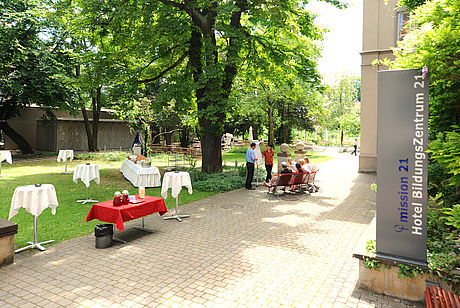 The dinner will take place in the charming park of Hotel Bildungszentrum 21, located in the centre of Basel.